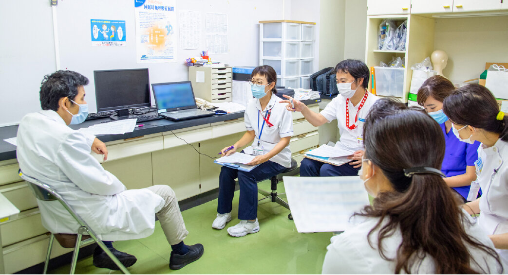 院内の感染制御の核になる感染対策チーム(ICT)は、医師、看護師、薬剤師、臨床検査技師で構成されています。週1回のラウンドでは、感染対策が適切かどうか、設備や環境が衛生的に管理されているかを確認して随時指導しています。2018年からは抗菌薬適正使用支援チーム(AST)の活動も開始し、患者さんへの抗菌薬の投与方法や期間、検査の実施状況等を確認し、現場へフィードバックしています。今年度は、看護部感染防止対策委員のラウンドも実施し、より多くの職員の目で感染対策の確認・評価しています。