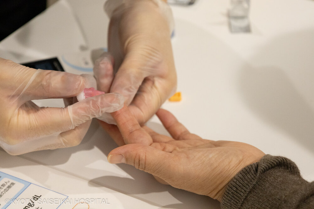 14日(金)には血糖測定体験も行い、「家族が糖尿病だから心配で」「健康チェックのために体験したい」など120名の方が体験されました。